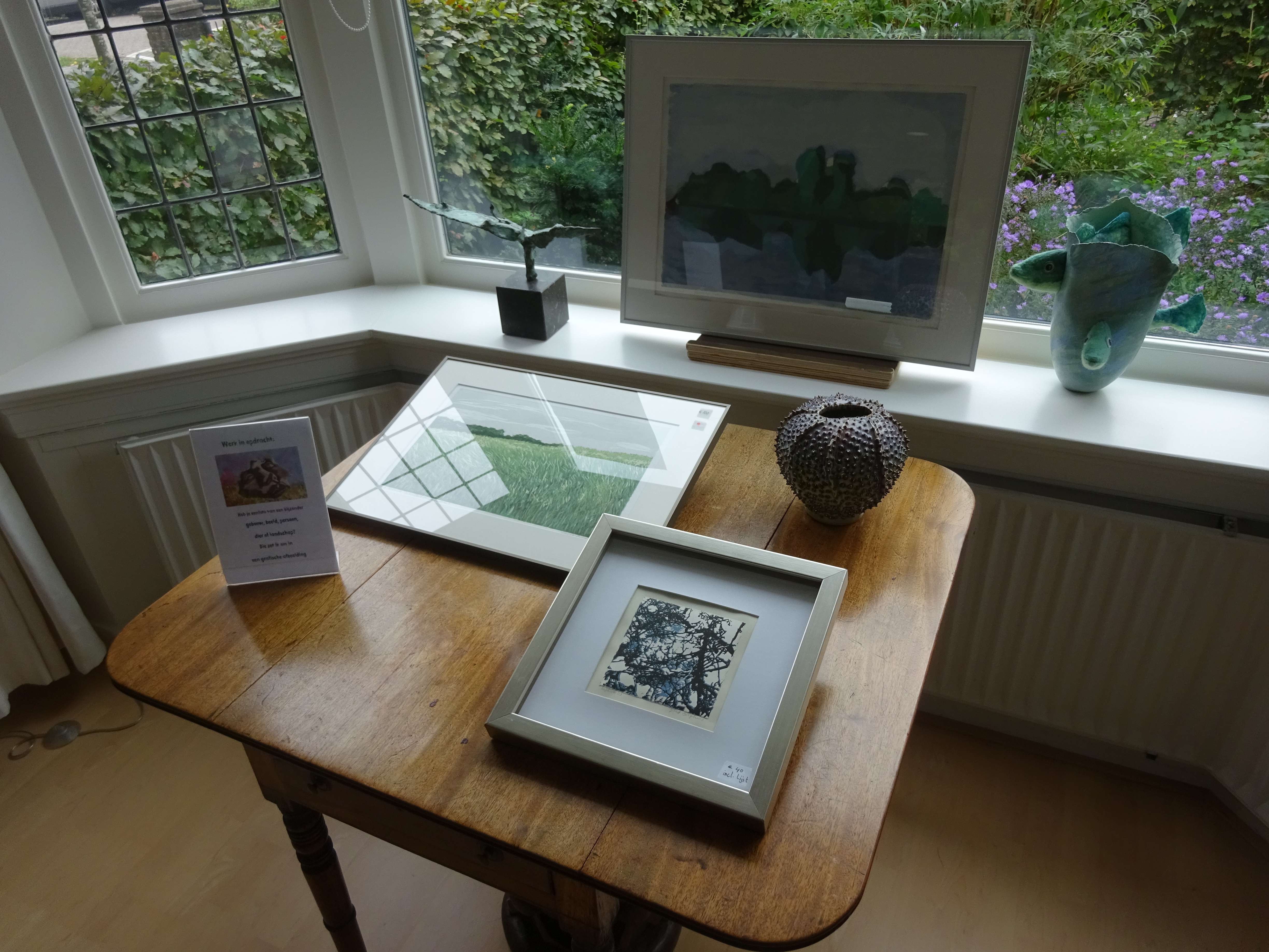 Mijn werk in het echt bekijken? Dat kan op mijn werkplek thuis. Daarnaast een aantal keren per jaar op een lokale kunstmarkt, of atelierroute. Klik voor meer informatie over de twee locaties 2025 hieronder.