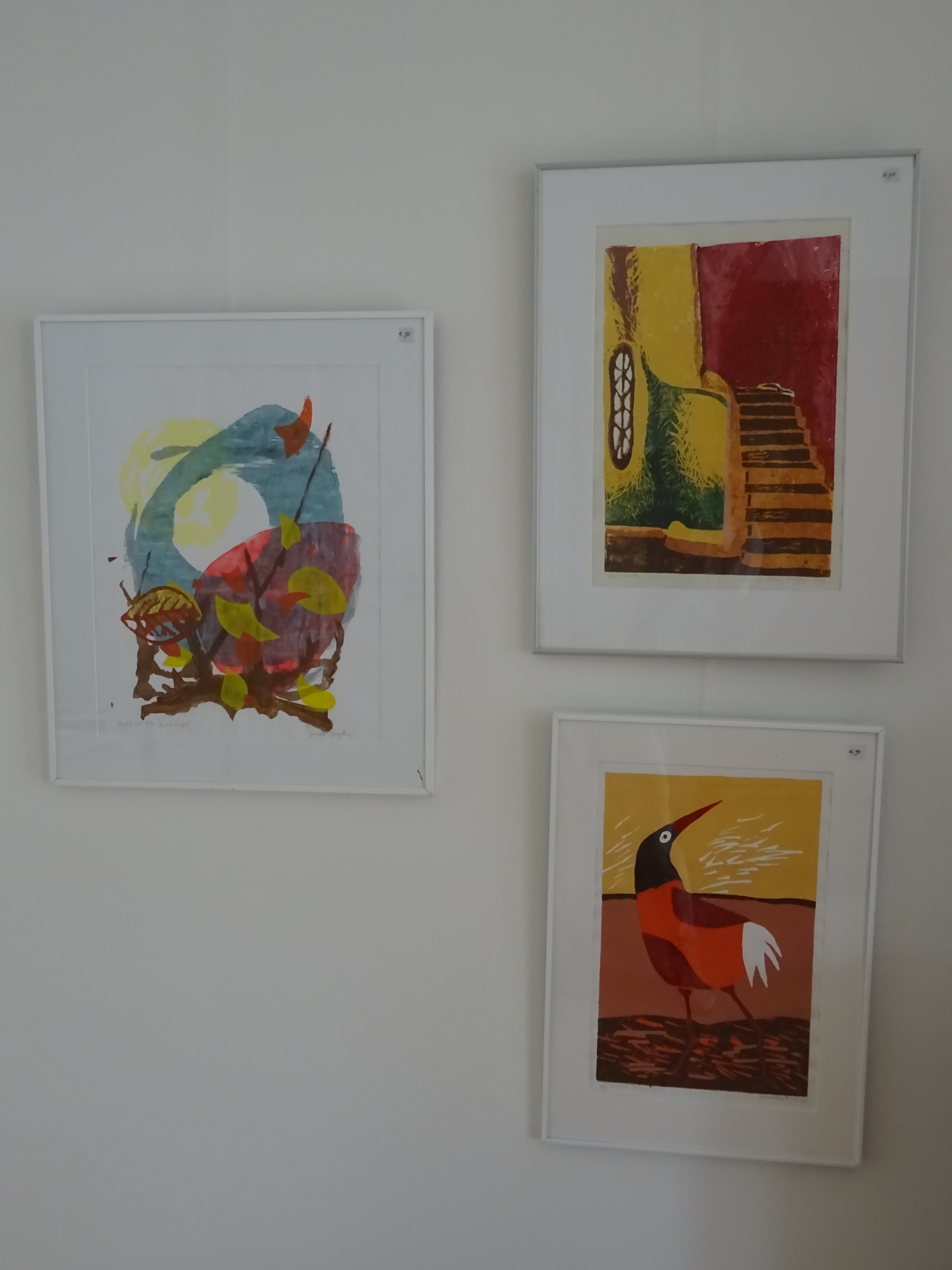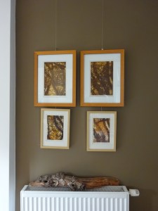 Linosnedes, kartondrukken, etsen en zeefdrukken maak ik in een kleine oplage.
