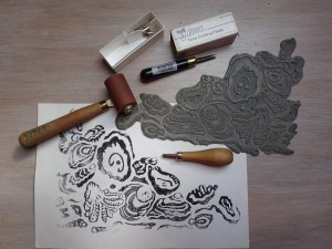 – snijden met gutsmesjes in linoleum