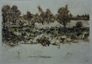 Enkel landschap: liggend, ets 1/3, 22×27 cm. Verkocht.